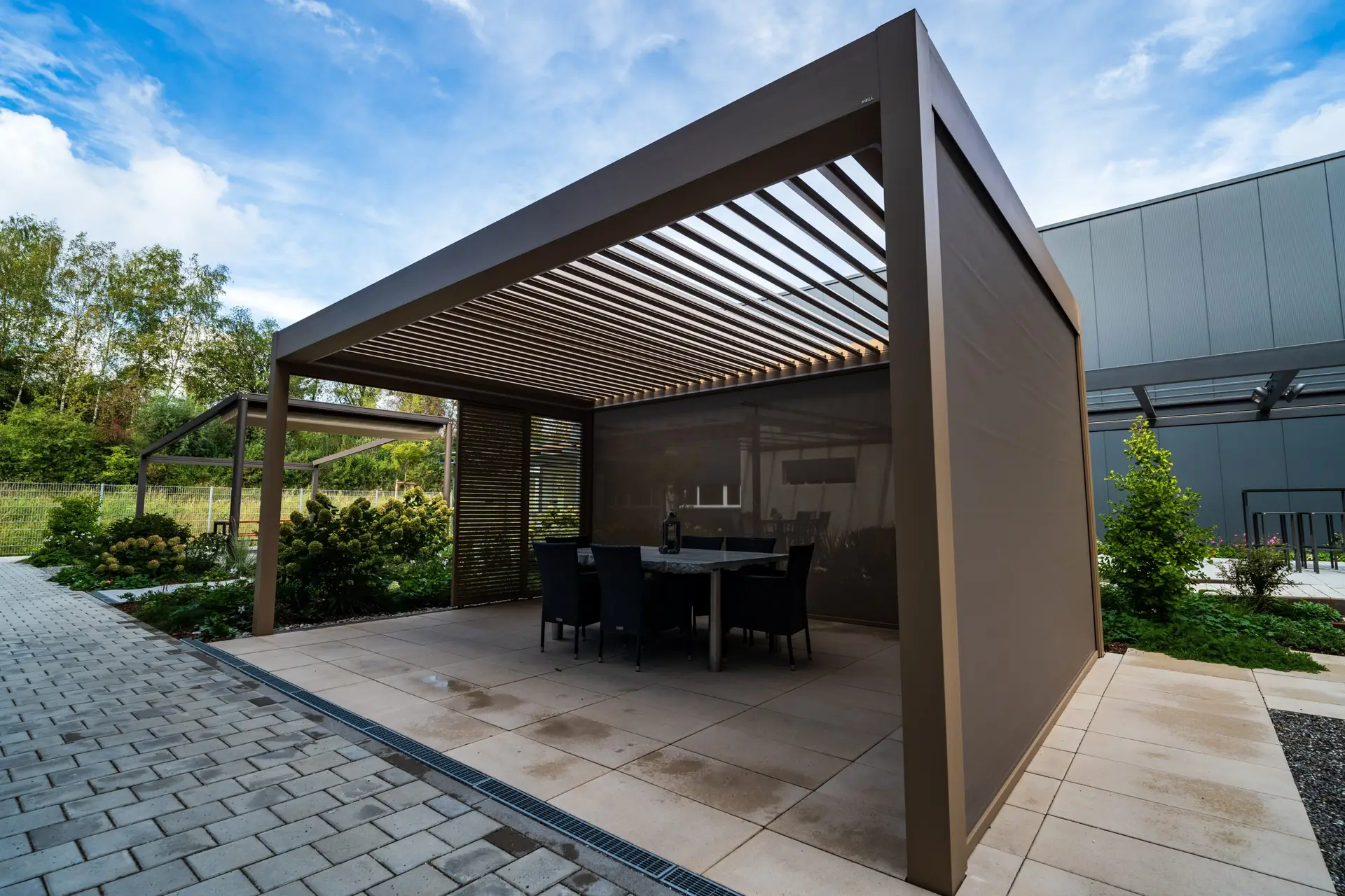 Freistehende Terrassenüberdachungen lassen sich mit Hilfe von verstellbaren Lamellen statt einem geschlossenen Dach als Highlight in Ihren Garten integrieren. Dank verschiedenster Gestaltungsmöglichkeiten der Seiten z.B. mit Fixscreens aus Soff, Ganzglas-Schiebe-Systemen sowie alternativ mit Schiebe-Systemen mit festen oder verstellbaren Lamellen bleiben keine Wünsche offen. Die Überdachung schützt vor Hitze, Kälte und Regen. Somit entsteht ein zusätzlicher Wohnraum in Ihrem Garten, welchen Sie zu jeder Tages- und Nachtzeit dank optionaler Beleuchtung nutzen können